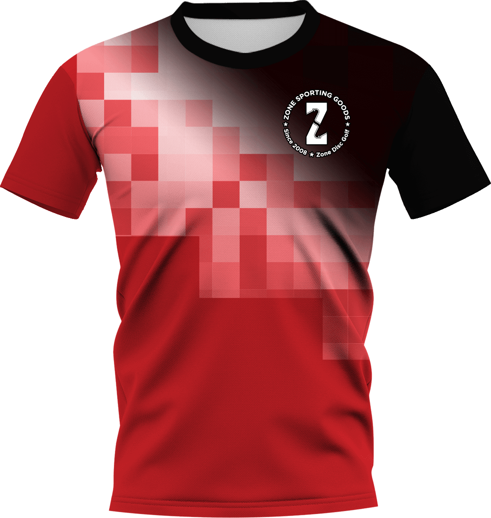 Disc golf jersey designed by Justin Smith. Produced and delivered by Zone Sporting Goods.